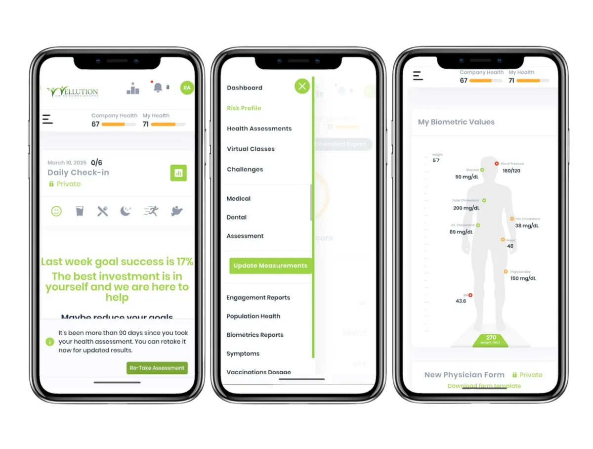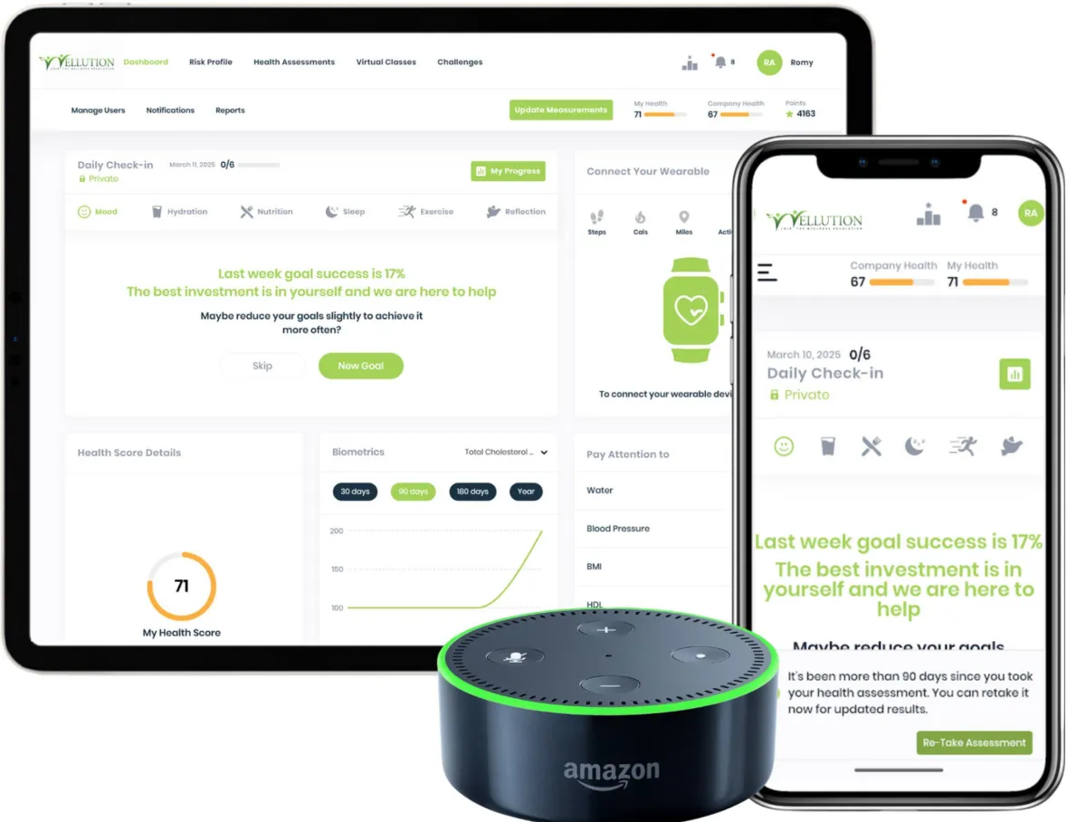 Conduct health assessments, upload biometrics, connect devices, and receive personalized wellness plans. Set daily wellness goals, watch health videos, earn points, and boost knowledge. Join challenges, compete, and redeem points for financial rewards and incentives.